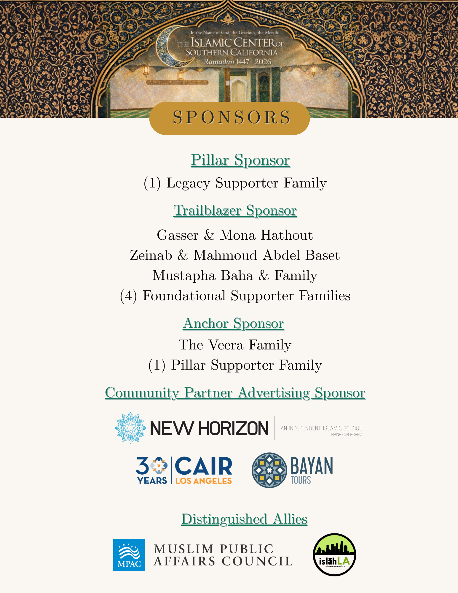 NOTE: This event will be photographed and recorded. By attending, you grant permission for the Islamic Center of Southern California to use images and video from the event for internal and external communications, including but not limited to social media, email, marketing campaigns, and website platforms. If you do not wish to be photographed or recorded, or would prefer that your image not be used, please let one of our staff members know at registration, and we will gladly accommodate.