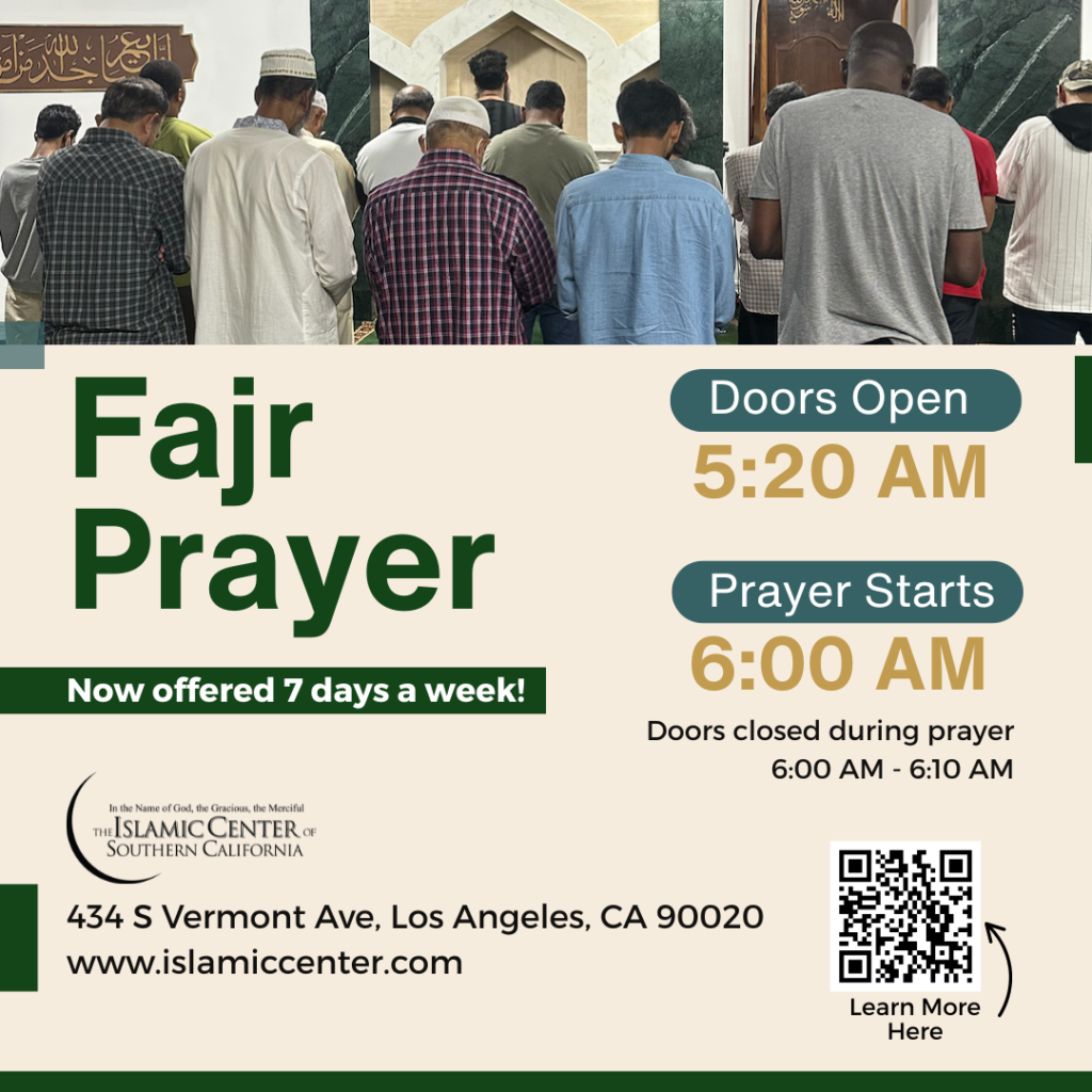 Please note that Fajr prayer times have updated and Fajr will be at 6:00 AM.